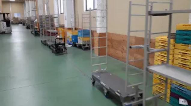 6輪カートをAGVで牽引して運ぶ 実際の搬送映像