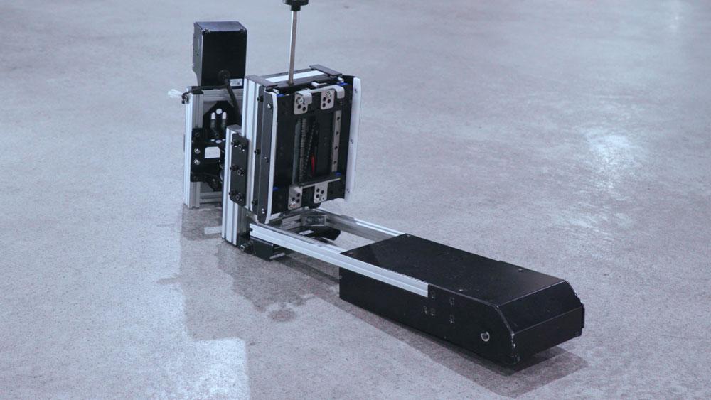 もし、火災が発生し防火シャッターが下降し始めたときにAGVが防火シャッター下付近を走行していたとします。障害物センサーがシャッターを検知できれば手前でAGVは停止することができ防火シャッターは床まで正常に下降します。しかし、障害物センサーが下降中のシャッターを検知できず通過し続けた場合、シャッターにAGVが挟まれたり、AGV後部の荷物がシャッターに引っ掛かり、シャッターが下降できず閉鎖障害となります。